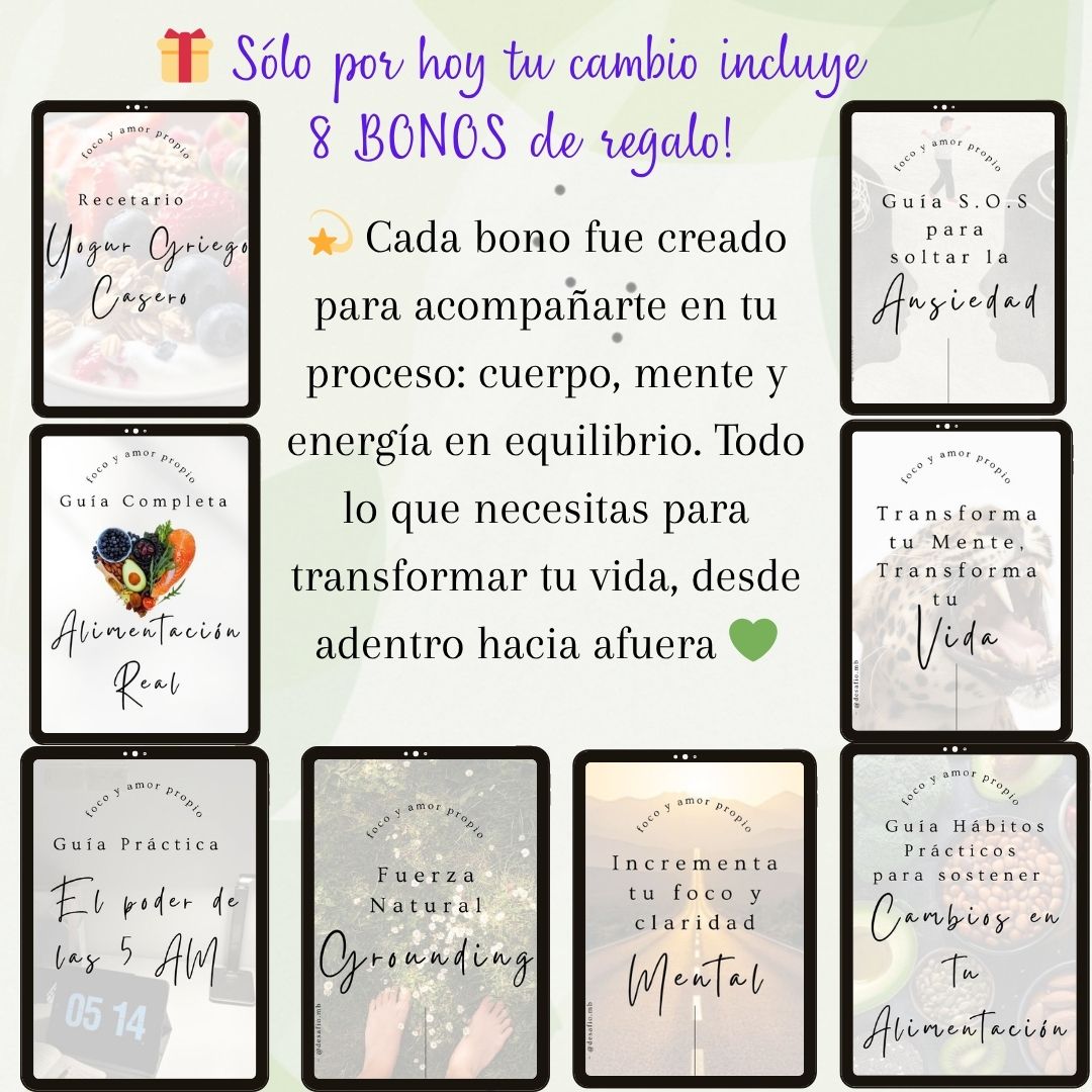 🌱 Basado en neurociencia, biohacking y alimentación consciente, este ebook te enseña paso a paso cómo recuperar el control, ganar foco y vivir con energía estable cada día.