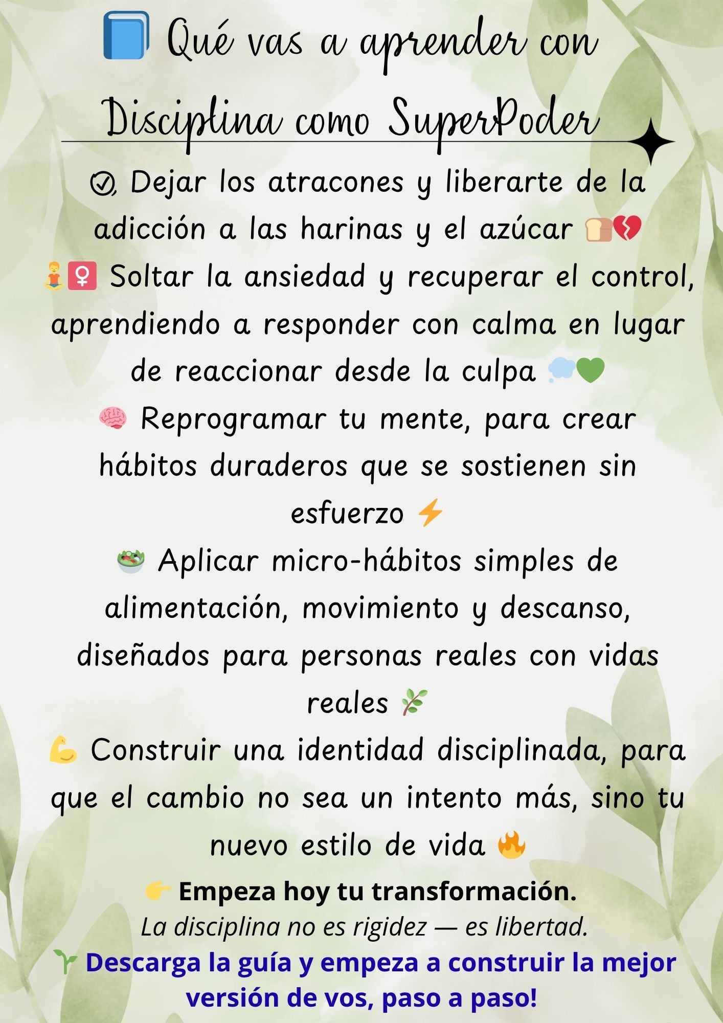 🌿 Disciplina como SuperPoder es mucho más que una guía: es un camino para transformar tu mente, tu energía y tu relación con la comida 💜