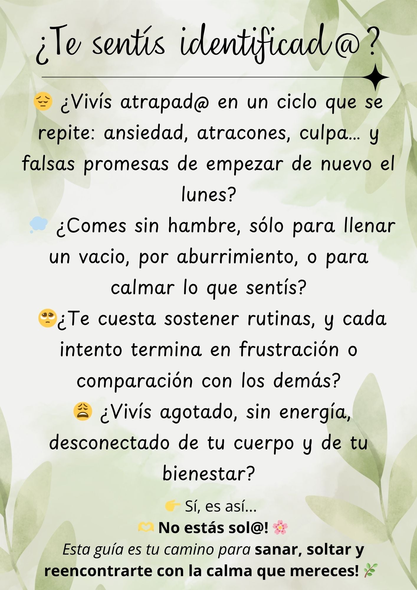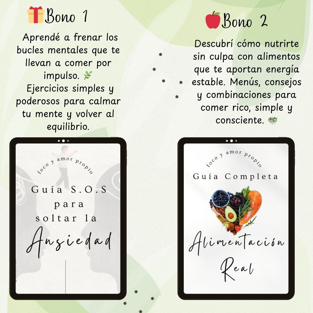 🧠 Aprende a soltar la ansiedad, dejar los atracones, reprogramar tus pensamientos y construir hábitos reales que se sostienen en el tiempo, sin dietas extremas ni culpas.